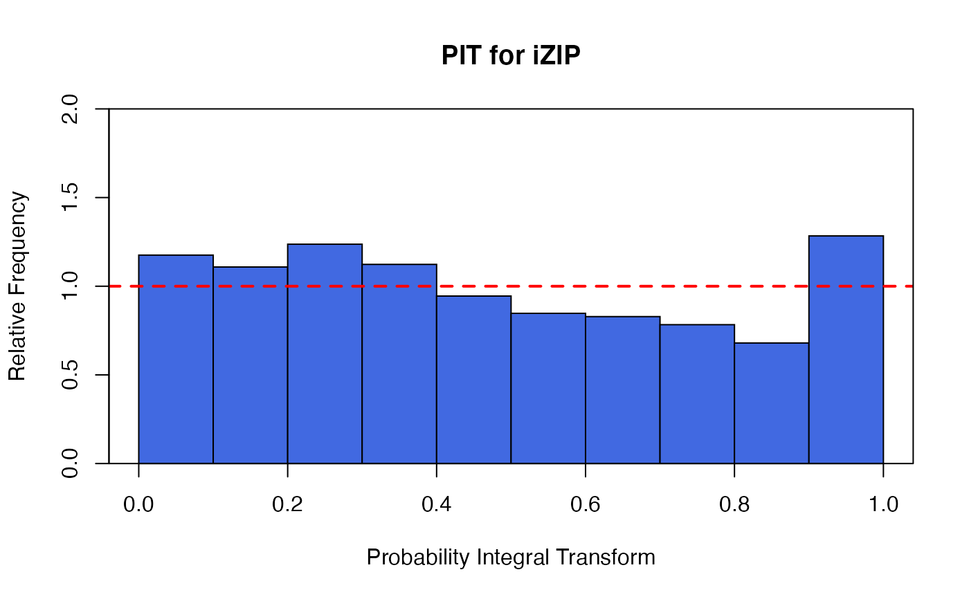 There are two plots based on the non-randomized probability integral transformation (PIT)